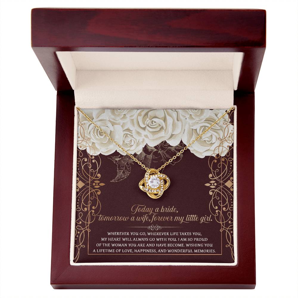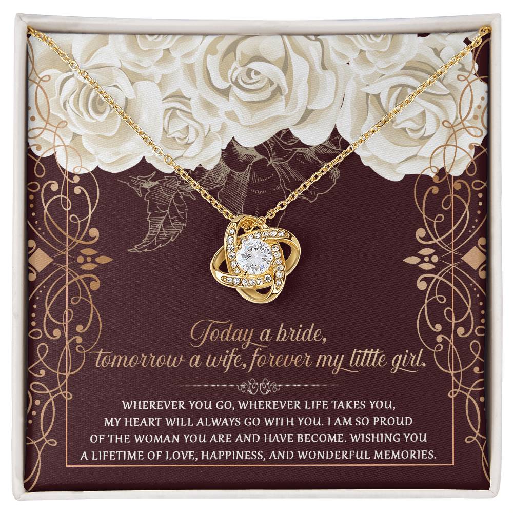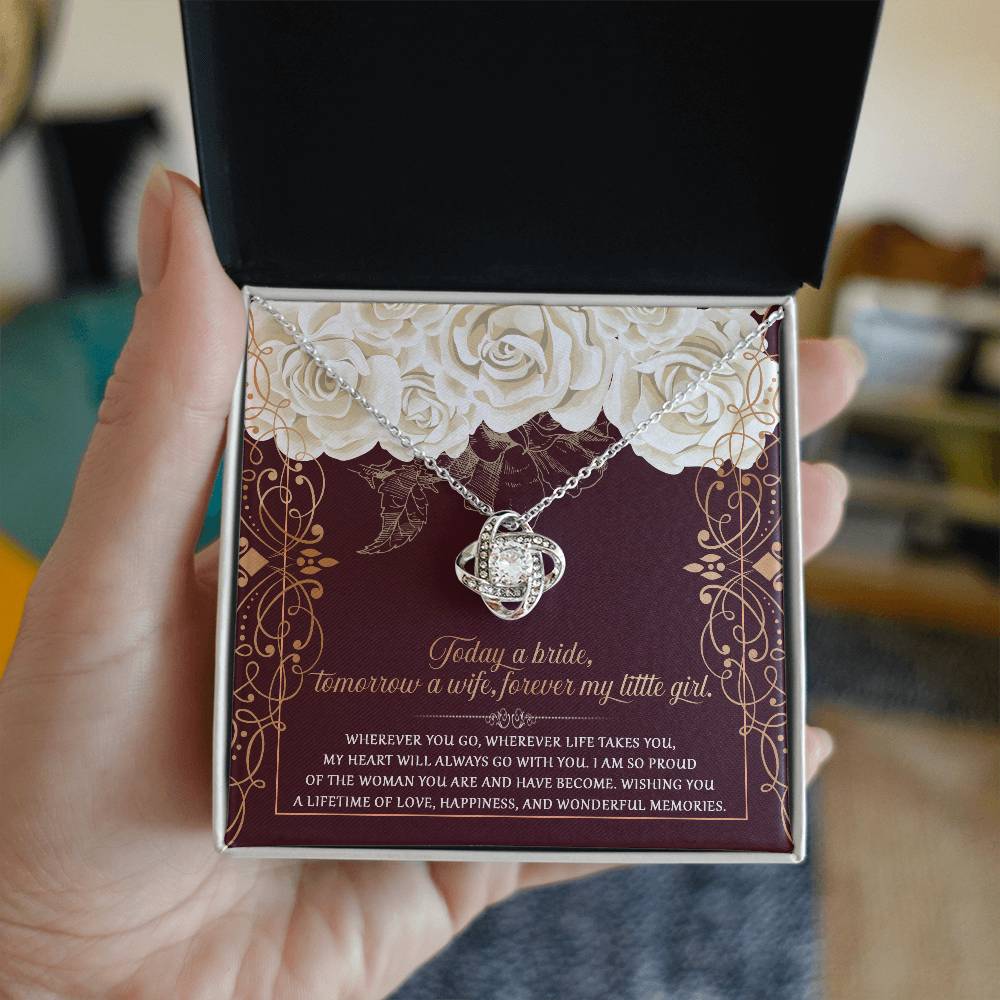 When your daughter receives this Love Knot Necklace, she will feel a deep sense of love and pride. The heartfelt message will remind her of your unwavering support and the special bond you share. This elegant gift will make her feel cherished and celebrated on her wedding day, creating a lasting memory of your love and blessings.